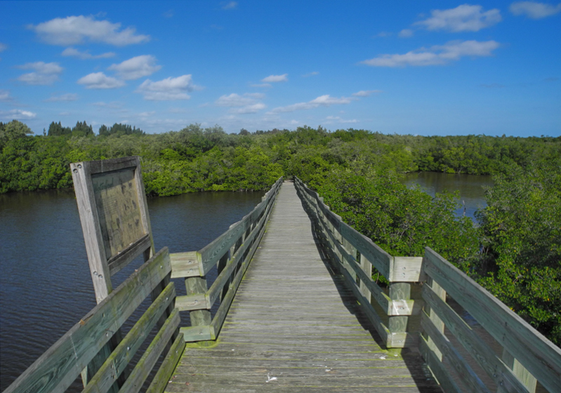 Oslo Riverfront Conservation Area observation tower. The entrance to the 336-acre conservation area is located on Oslo Road east of U.S. Highway One.