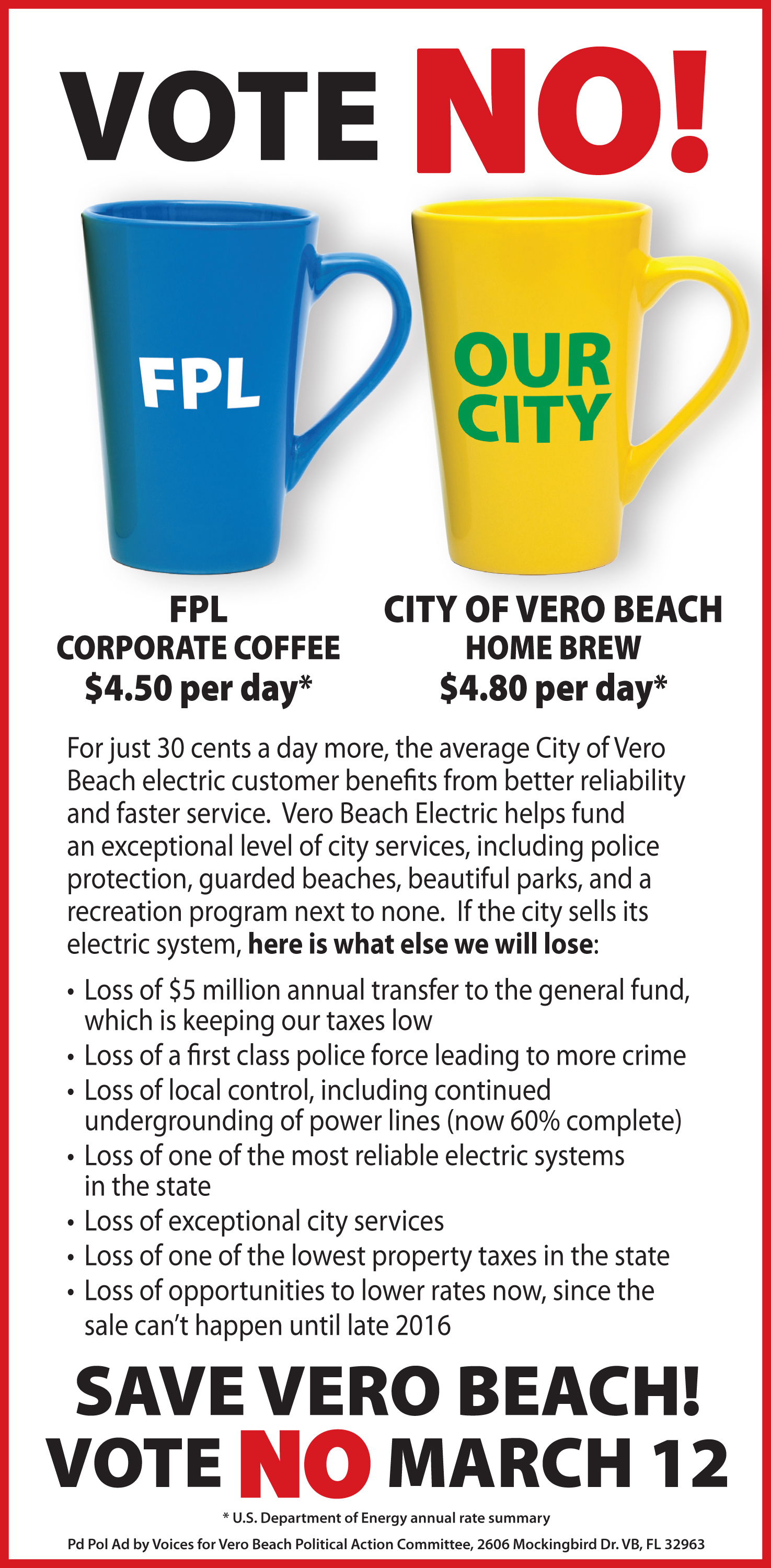 Voices for Vero, a political action committee opposing the sale under the terms proposed, also ran ads in the local newspaper, mailed post cards urging the electorate to vote “no,” and placed signes throughout the city. Should the referendum pass, the group plans to challenge the deal in court.