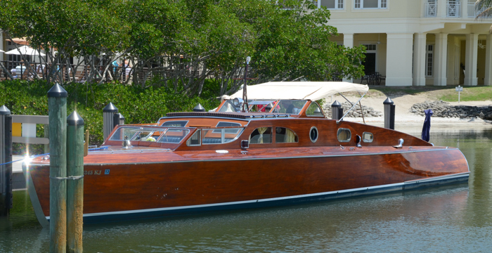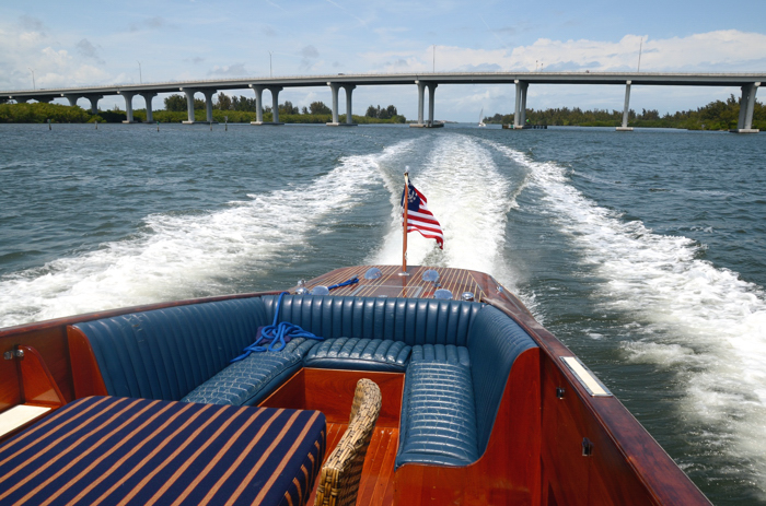 One of the events most popular draws this year was POSH, as 52 foot mahogany commuter cruiser built in 1937. The classic boat is owned by Todd Warner, of Mahogany Bay, a Minnesota company specializing in vintage motor boats. Warner offered cruises on POSH Friday, Saturday and Sunday. Sunday morning’s cruisers were treated to “a three hour tour” motoring at speeds of up to 30 knots from the Moordings south to Harbor Branch, north the the Wabasso Bridge and then returning to the Moorings. Warner will be motoring POSH to Jacksonville later this week, where the boat will then be trucked back to Wisconson.