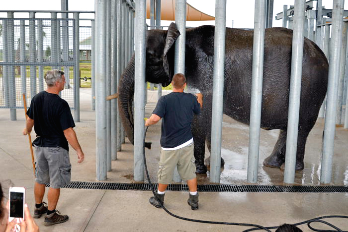 Phase one includes a 13,000-square-foot open air receiving area, a keeper’s station and four paddocks. Up to nine elephants will be housed in the initial phase. The elephants will begin arriving in the late spring, said executive director John Lehnhardt. Eventually the center will accommodate up to 37 elephants.