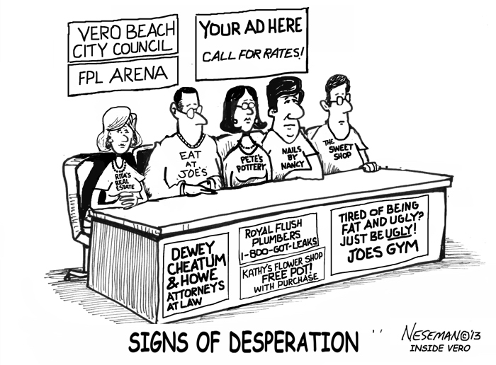 Ready to surrender the quality and character of a community that is, at least for now, still the gem of the Treasure Coast, the Vero Beach City Council voted recently to allow the sale of advertising on lifeguard stands. What’s next, advertising signs in the Council Chambers? To his credit, at least Councilman Winger encouraged the Council to step back and take a month to let the idea simmer, but his advice was to on avail. The Vero Beach City Council proved yet again that nothing dies harder than a bad idea.