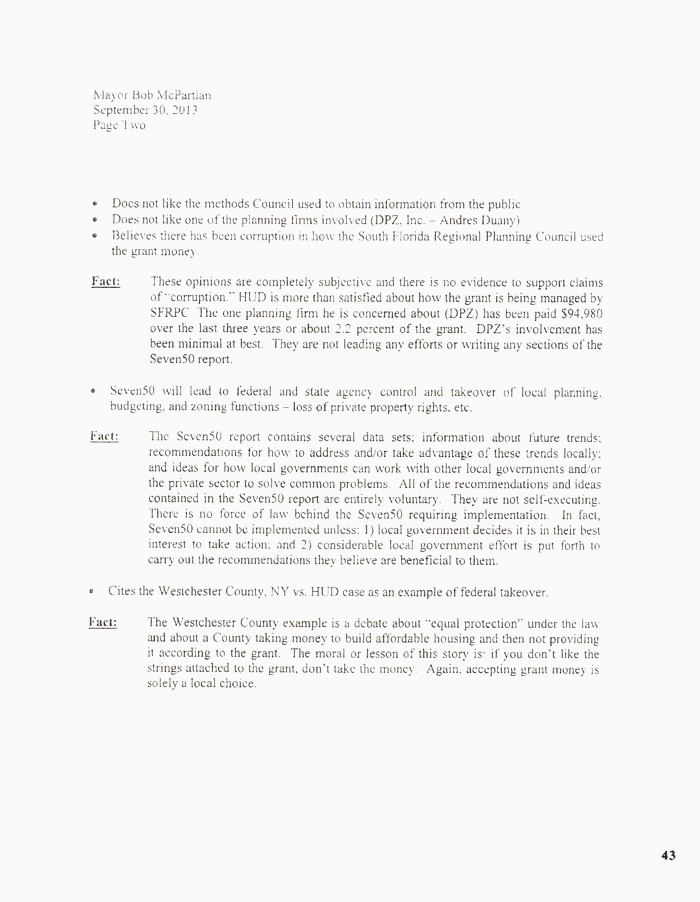 In his letter to McPartlan, Busha rebutted Solari’s criticisms of Seven 50, concluding, “It has been a long and frustrating process dealing with detractors of the effort based on political emotions and anger that have nothing to do with a regional planning exercise.”