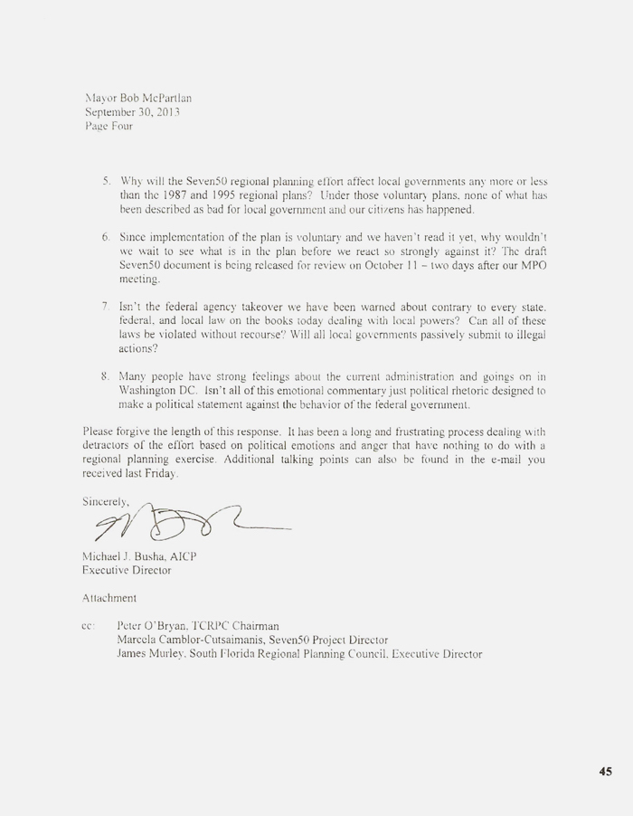 Solari indicated in his memo that during today’s Commission meeting he will ask Commissioner Peter O’Bryan, current Chairman of the TCRPC, for an opportunity to rebut Busha’s letter during the organization’s December 13 meeting, to be held at the Indian River State College Chastain Campus in Stuart.