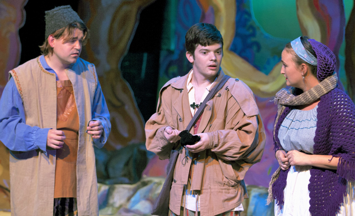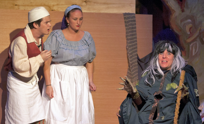 Characters continue to enter the woods, played by such talented actors and actresses, including Mary Volsky as Jack’s devoted but strict mother; Kelly Clemenzi as an easily distracted and equally clumsy Cinderella; Robin Ecklord Spalin as Cinderella’s loving mother; Collette Lavoie Loo as Cinderalla’s not-so-loving step mother; Emily Jones and Heather Stapleton as Cinderella’s demanding step-sisters; Art Haeberle as Cinderella’s father, Robin Volsky and Ben Earman as Princes in search of their Princesses; Laura Baldwin as Rapunzel; Lisa Keeler as the rambunctious Little Red Riding Hood; Nicholas Keeler as the Steward to the prince; Larry Sircy as Jack’s best friend, Milky White; Jill A. Hargrave as the Giant, Colleen Hilla Loo as Sleeping Beauty and Kali Pierce as Snow White.