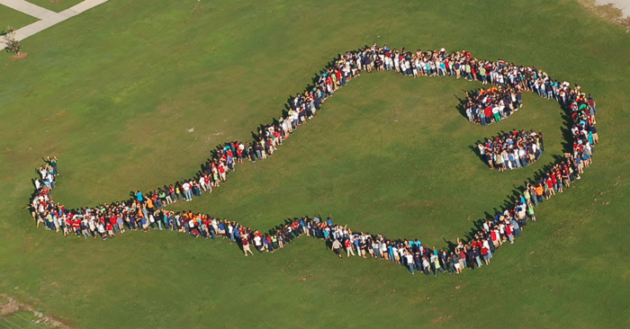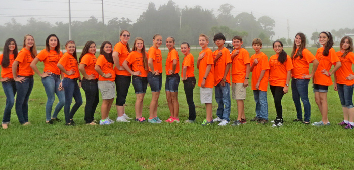 Every year, to commemorate International Day of Peace, eighth grade students from Storm Grove Middle School don Day of Peace T-shirts and “pose” for a very special photo, with the help of the Mischler family, whose daughters are former Storm Grove students. The family owns a plane and – weather permitting – Mr. Mischler flies over the school as the students in the activity field below form a giant symbol. In previous years, they’ve formed a heart – for Love; a peace sign – for Peace; and a Smiley Face – for Happiness. This year, with teacher Megan Kendrick at the helm, the students formed a giant Sting Ray, in honor of the school mascot. A “Dress-Down Day” was also part of the celebration. Each year, students donate $1 for the privilege of “dressing down,” and the money collected is presented to a local charity. This year, Indian River Habitat for Humanity was the recipient of over $300.