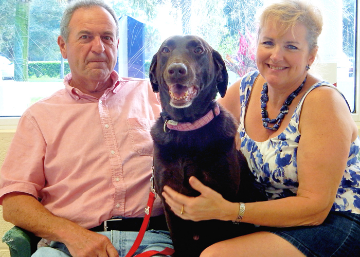 Humane Society of Vero Beach and Indian River County volunteer John Roperta sits with Linda Roberts and Ella, an eight-year-old female Labrador retriever mix. The couple will be caring for Ella as part of the shelter’s “Home for the Holidays” foster program.
