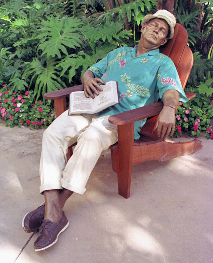 Beginning January 3, visitors to McKee Botanical Garden may be startled by the addition of bronze sculptures so life-like and convincing in appearance that they may be mistaken for actual human beings. These sculptures are the work of American artist Seward Johnson, whose talents will be showcased in the Seward Johnson Sculpture Exhibition on exhibit at McKee through April 27.