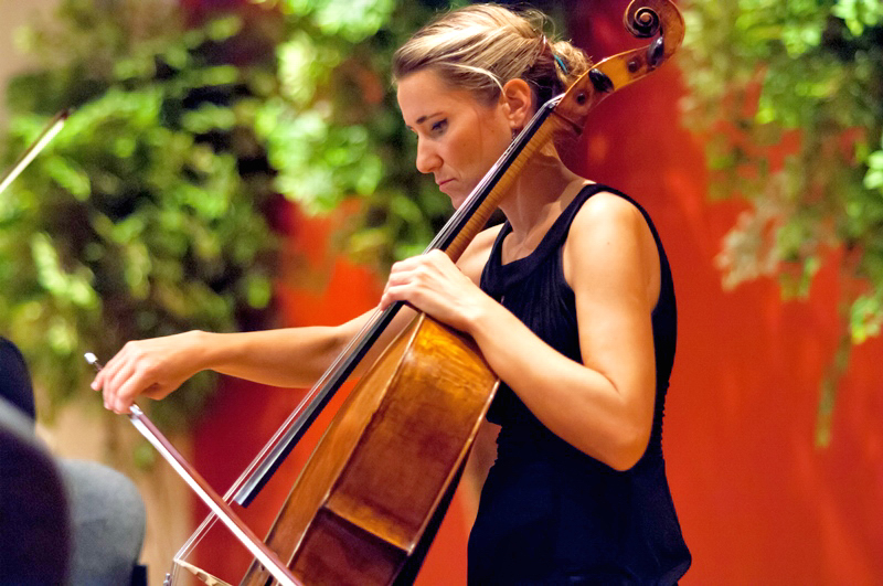 The concert began with Beethoven’s String Quartet No. 1 in F, Op. 18, a dramatic and impressive work that is considered the cornerstone of the quartet repertoire. Rounding out the afternoon’s program was Schubert’s somber and brooding, yet lyrical String Quartet in A minor, D. 804. Following the performance, guests enjoyed a wine and cheese reception where they mingled with violinists Aleksandr Zhuk and Dina Kostic, violist Sandra Robbins, and cellist Ashley Garritson.
