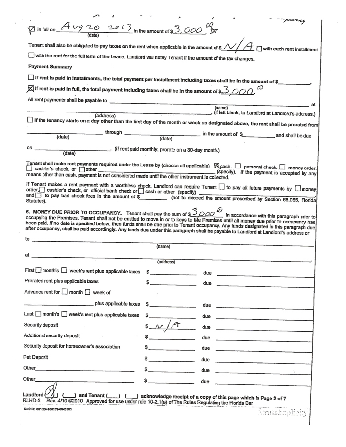 The option selected on the executed lease between Wilson and Schwanbeck was “In full on August 20, 2013 in the amount of $3,000.”