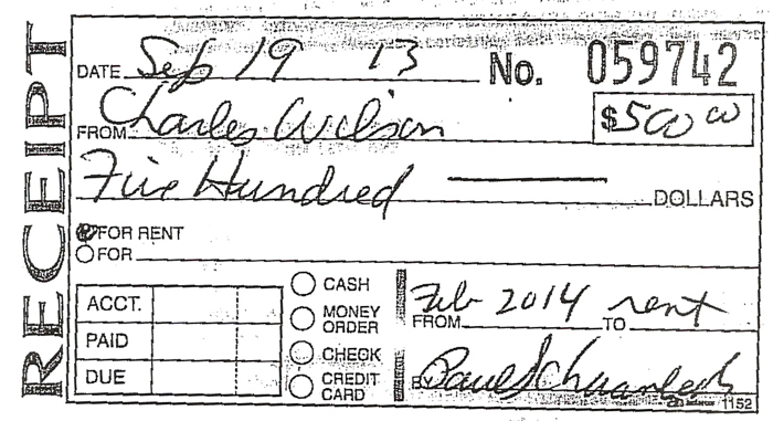 Wilson provided the City Clerk’s office with copies of three receipts showing he paid $2,000 on August 20, $500 on August 28, and a final payment of $500 on September 19. According to the terms of the lease, Wilson was not entitled to occupy the premises until September 19, the date when his final rent installment of $500 was paid, which is also the date when the utilities were placed in his name.