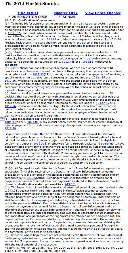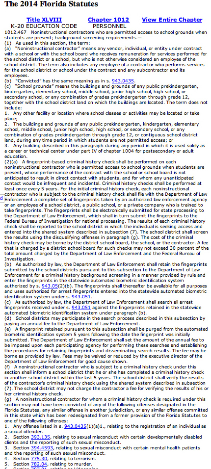 Below are the relevant Florida Statutes with which Searcy is refusing to comply: