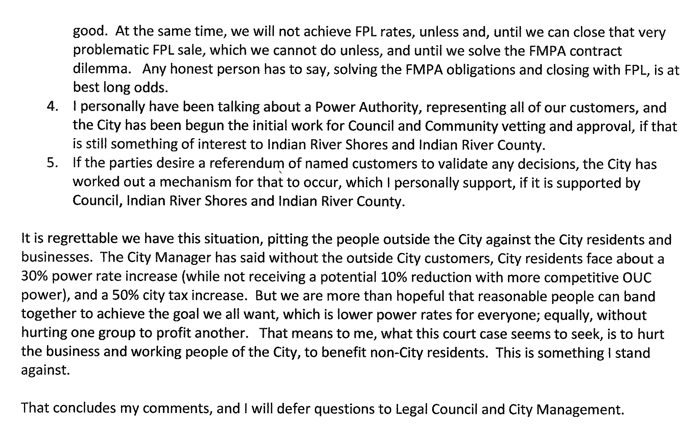 Vero Beach Mayor Richard Winger read the following prepared statement at the beginning of the conflict assessment meeting held this morning at the Richard Center on the Indian River State College Muller Campus.