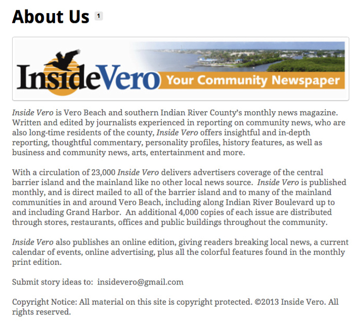The following copyright notice appears on InsideVero.com’s “About Us” page.