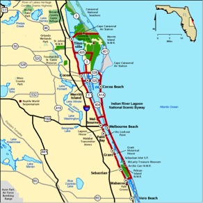 See map and information below and on next page of Indian River Lagoon National Scenic Byway which was taken directly from U.S. Department of Transportation, Federal Highway Administration website for “America’s Byways. According to this U.S. Department of Transportation website: