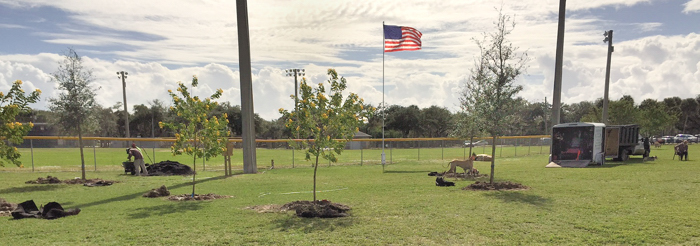 Delivering on its promise to make improvements to land now leased from the City, the Friends of the Vero Beach Dog Park Exercise Area this past weekend planted 55 trees of six varieties. Another 10 trees are pledged. All the improvements recently made to the Park, including fencing, signs, water supply and landscaping have been paid for through private contributions.