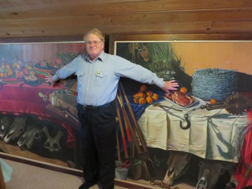 He has one painting hanging over his bed that features a herd of cattle. Obviously, they weren’t all posing in position long enough for him to paint them. “That painting took an entire season to finish, working on it only when I had time. I might paint one standing in a certain position, then copy one in that attitude but another position. You can see that the group represents several attitudes repeated to fill the scene. I actually painted this one on the back of a truck and would drive out to the same spot the same time of day.”