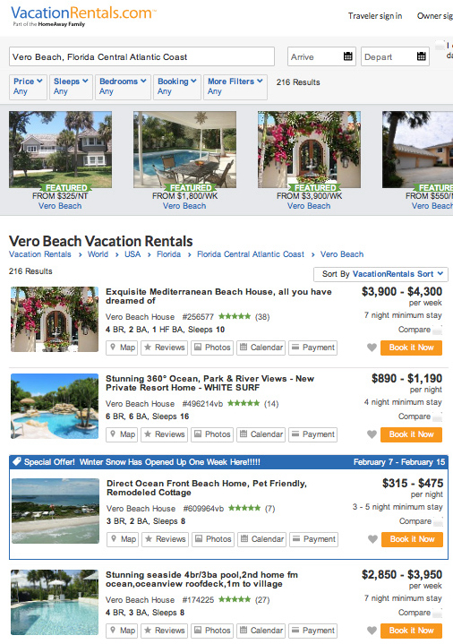 If you check the biggest rental web site ( VRBO.com ) you will see 405 places available for rent. Now some have a 30 day minimum but well over 100 of these do not, ranging from 1-7 night minimums. ( http://www.vrbo.com/vacation-rentals/usa/florida/central-east/vero-beach )