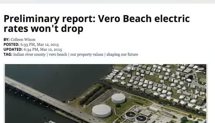 In a story posted this morning on TCPalm.com, Scripps Treasure Coast Newspapers published a headline informing readers Vero Beach electric rates “won’t drop.” As is typical of Scripps’ reporting on the Vero Beach electric story, the headline is more than a little misleading.