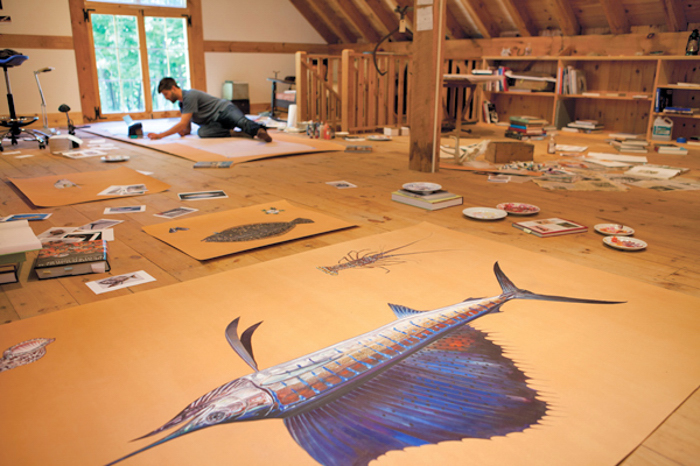 American artist, writer, and naturalist James Prosek’s mixed media paintings are in the new exhibition JAMES PROSEK: Ocean Fishes on view from June 6th through September 6th at the Vero Beach Museum of Art, 3001 Riverside Park Drive. The exhibition features twenty-two life-size paintings of some of the most well- known species of saltwater fish in the world. Published in his book Ocean Fishes (available for purchase in the Museum Store), Prosek’s paintings portray Atlantic game fish still shining with the hues of life. A special feature of the exhibition, in partnership with the Indian River Land Trust, the Museum will house a 500-gallon aquarium in the Buck Atrium with live fishes representing four “umbrella species” important to the dynamic and fragile ecosystem of the Indian River Lagoon.