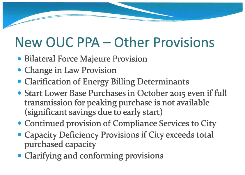 Yesterday, Vero Beach’s special utility counsel, Shef Wright, presented a detailed explanation of the anticipated impact of each of the changes to the Vero Beach-OUC wholesale power contract.