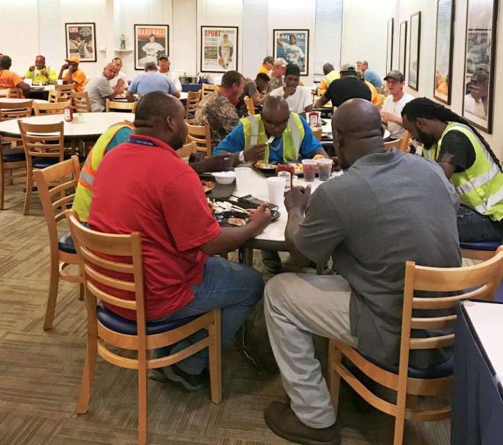 Nearly 60 utility workers and tree crew specialists are being temporarily housed and nearly 140 workers are being fed at Historic Dodgertown – Vero Beach, Florida as Indian River County homes and businesses recover from Hurricane Irma’s damage. The men are staying in the hotel villa rooms and are being fed a hot breakfast and dinner each day in the dining room, and box lunches are provided for all.