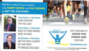 In truth, Zudans and fellow candidate Harry Howle are running their campaigns on the electric issue. Both are supported by a political action committee wholly funded by Florida Power and Light to the tune of $50,000. Despite the fact that he is clearly a pawn of FPL, Zudans brought himself to write, “it is important to support candidates who aren’t pawns of special interests groups…”