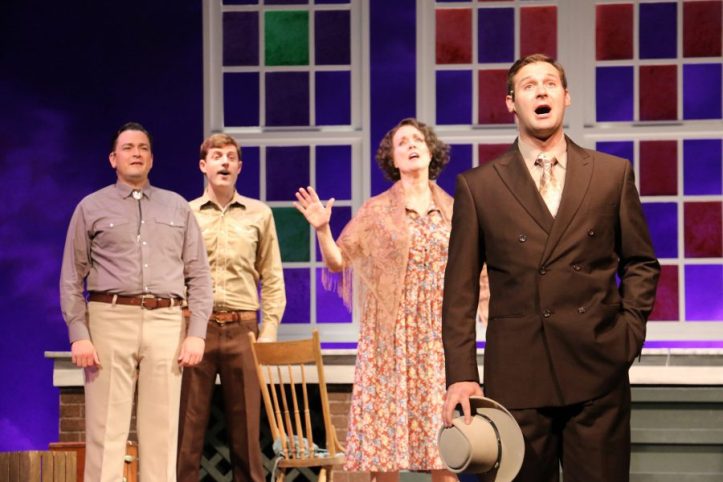 The show was written by Randal Myler and Mark Harelik, who weave the most important moments of Hank Williams’ life between performances of his hit songs. But this production is not about his death at 29, even though that is covered at the beginning, and not about his alcohol and drug problems, which are certainly a part of his story. What it is though, is a celebration of his life and music. The musicians performing onstage are excellent and the singing, especially from Ben Hope, comes from the heart and soul.