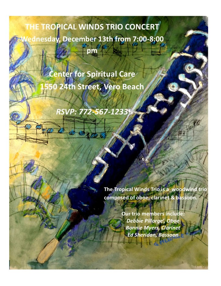 The Center for Spiritual Care, 1550 24 Street is hosting the “Tropical Winds Concert on Wednesday, December 13 from 7:00 to 8:00 pm. Donations will be gratefully accepted.