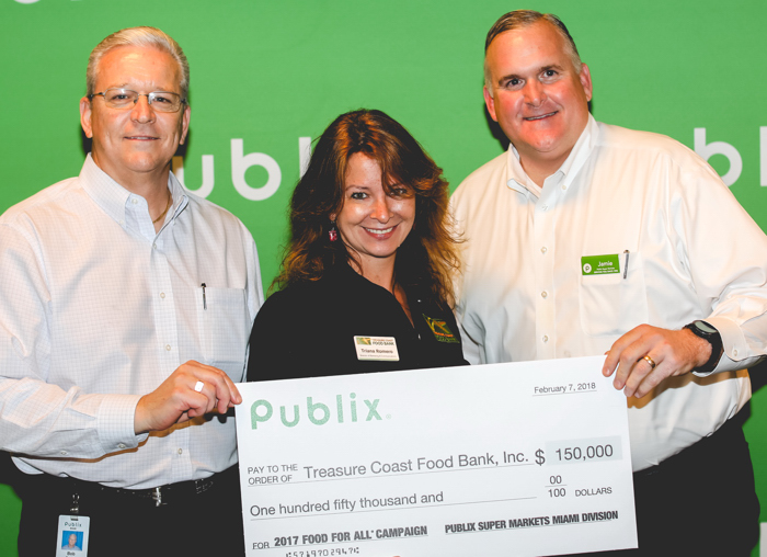 Treasure Coast Food Bank recently received $150,000 from Publix Super Markets’ 2017 Food for All fundraiser.