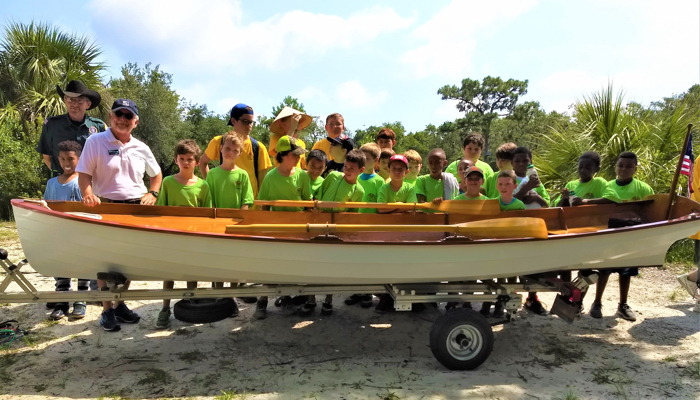 Camp Oklawaha is a 67-acre wilderness preserve carved out of sweeping bends in the San Sebastian River. Surrounded by water on two sides, the camp is an ideal site for canoeing and fishing. “Louisa,” a classic lapstrake row boat, will add a new dimension to the training regimen offered by the camp.