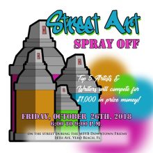 Island Images/GalleryofHope.org and Main Street Vero Beach are seeking artists to submit and participate in the First “Street Art Spray Off” to take place outside on 14th Avenue and 21st Street in the Downtown Historic Arts District during the MSVB Downtown Friday event on Friday, October 26th, 2018 from 6:00 p.m. to 9:00 p.m. For details, visit galleryofhope.org