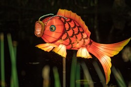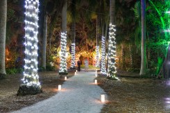 Garden illuminated at night during Holidays at McKee. McKee’s majestic palms and pathways will once again be adorned with thousands of colorful lights, whimsical lanterns and holiday décor on display. Holidays at McKee is from December 21 through December 23 from 6:00 to 8:00 pm. The annual tradition of Holidays at McKee features the music of a 1924 Wurlitzer vintage band organ, an ever-expanding model train display, Department 56 holiday village display and photo opportunity with Santa and Mrs. Claus. A wide variety of holiday gifts will be available in McKee’s Garden Gift & Book Shop and the Garden Café will offer a special holiday menu of festive treats. A schedule of special entertainment during Holidays at McKee will feature the Imagine School Tangerine Music Group on December 21, McKee Melody Makers on December 22, and April French of Lady Sings the Blues Band on December 23.