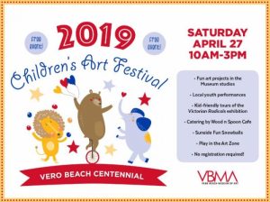 Join us at the Vero Beach Museum of Art for our annual Children’s Art Festival event for the enjoyment of families and children of the community. The event, to be held on Saturday, April 27, 2019 from 1 pm to 3 pm throughout the Museum, is inspired by the City as Vero Beach turns 100 years old! This year we honor tradition and celebrate our community with art-making, local youth performances, open art galleries, and interactive play, all inspired by the things we love about Vero Beach.