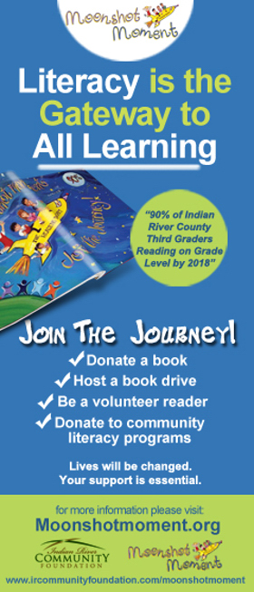 On May 11, from 10:30 a.m. to 1:30 p.m. families can take a Deep Dive Into the Lagoon through Literacy during a free, event at the Indian River County Main Library. The Moonshot Community Action Network (MCAN) brings together literacy, the arts, and environmental stewardship to shine a spotlight on the importance of literacy and the unique vibrancy of the community.