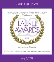 Join the Cultural Council of Indian River County on Wednesday, May 8 at 6 pm at Riverside Theatre to celebrate the recipients of the 2019 Laurel Awards and their contribution and service to the arts community in Indian River County. The honorees are: Susan Schuyler Smith & Suzan Phillips, McKee Botanical Garden (Richard A. Stark Award for Cultural Leadership), Carol Ludwig, Center for Spiritual Care (Alma Lee Loy Award for Volunteer Leadership), Jacob Craig, Vero Beach Pipes and Drums (Willie C. Reagan Award for Educational Arts Leadership) and Ocean Drive Plastic Surgery, Dr. Alan Durkin, Owner (John J. Schumann Jr. Award for Business Leadership). Enjoy an evening of art and performance. VIP tickets are $75 and include a Cocktail Reception with heavy hors d’oeuvres, the Presentation Program and a champagne toast with dessert. Tickets for the Presentation Program only are $25. Visit tickets.riversidetheatre.com or call the Cultural Council at 772-770-4857.