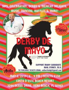 The Kentucky Derby and Cinco de Mayo have merged to become “The Derby de Mayo” for one night to support the Leukemia & Lymphoma Societies’ Man of the Year nominee Raul Storey, MD from Florida Cancer Specialist and Research Center. Derby de Mayo will be held at Costa d’Este on May 2, from 6 to 9 p.m.