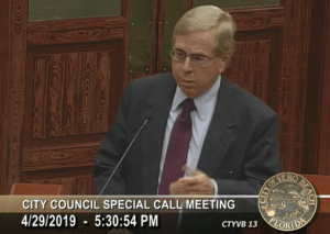 Four former City of Vero Beach mayors (one of whom currently sits on Council) were at the meeting to fight against any attempt to replace this important City Attorney position with an outside Orlando law firm. Former Mayor Richard Winger addressed Council on the mayors’ behalf as well as several members of the public. No one in the audience spoke in favor of any outside law firm. In fact, community activist Phyllis Frey presented several reasons why the Vose firm in particular should not be hired.