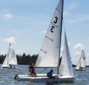 The regatta in Fort Pierce was the fifth and final leg of the Spring 2019 Florida East Coast Series. JohnMark and Julia’s win secured them 2nd Place overall, while big sister Karis Gaponiuk and her crew Jacob Gingras put in a strong enough showing to earn them the 3rd Place trophy for the series.