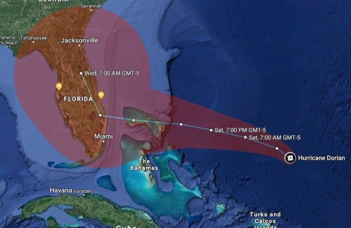 Hurricane Dorian has potential for EXTREME Hurricane Wind & Water event for Florida.