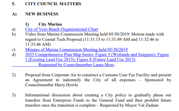 So now he wants to ‘discuss’ ending the City’s Enterprise Funds. The Enterprise Funds (water and sewer, solid waste, airport, marina) have provided revenue to the City for years, keeping taxes among the lowest of any Florida municipality while maintaining an excellent level of service to its citizens, for which Vero Beach is well known and respected.