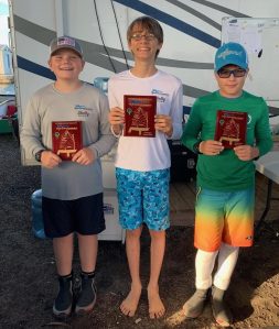 Staging a regatta of this scope requires a great deal of planning and coordination. With safety paramount, each course had 3 safety boats plus the race committee boat, all manned by experienced and qualified YSF volunteers. The Kiwanis Club of Vero-Treasure Coast cooked and served 300 hamburgers and hotdogs to hungry competitors and parents. Well over 25 YSF volunteers prepared for weeks in advance and helped with race-day activities. The launch, racing, and recovery came off like clockwork with all the young sailors demonstrating incredible sailing skills and seamanship. The scoring team had final results certified and posted within a few minutes of the final race.