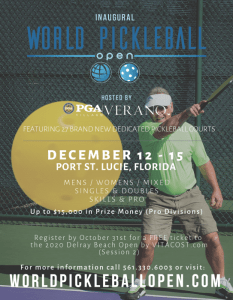Kolter Homes will host the inaugural World Pickleball Open (WPO) at PGA Village Verano in Port St. Lucie, Fla. between December 12 – 15, 2019. There are 14 entrees from Indian River County.