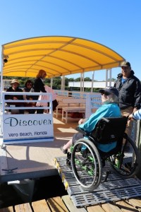 The Environmental Learning Center (ELC) is proud to announce that we can now have guests with wheelchairs on our beloved pontoon boat excursions. With our new roll-a-ramp, a portable, aluminum ramp that gently gets the guests from the dock to the pontoon boat, all guests can now enjoy this beautiful boat trip on the Indian River Lagoon.