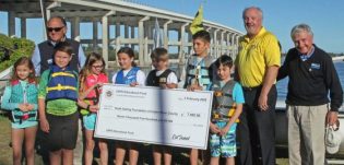 The Youth Sailing Foundation was honored recently with a grant from the United States Power Squadrons Educational Fund in recognition and support of YSF’s afterschool sailing instruction offered free to the children of Indian River County. Fund Trustee/Secretary Nigel Hargreaves presented a check for $7,500 to YSF Chairman Pat Harris at a waterfront ceremony attended by members of the local Vero Beach Power Squadron and YSF volunteers.