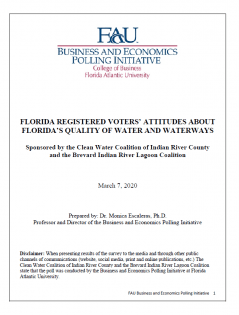 A statewide poll of registered Florida voters shows that more than 81% of respondents agree or strongly agree that state and local governments need to do more to protect water quality in lakes, rivers, springs and estuaries. The poll was conducted by Florida Atlantic University and surveyed 1,150 people statewide. The survey was commissioned by the Clean Water Coalition of Indian River County and the Brevard Indian River Lagoon Coalition.