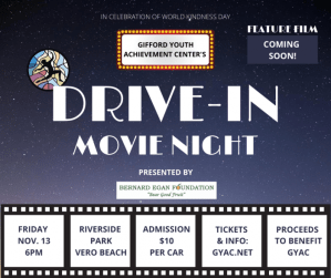 Pack up your pillows and blankets! In celebration of World Kindness Day, the Gifford Youth Achievement Center (GYAC) is planning a pop-up drive-in movie experience they hope will inspire a world of kindness. “As a non-profit focused on inspiring people of ages and backgrounds to reach their ultimate potential, kindness is intrinsic to our organization. With drive-in movie showings on the rise, we look forward to offering a safe, feel-good way to bring the community together,” says Angelia Perry, GYAC Executive Director.