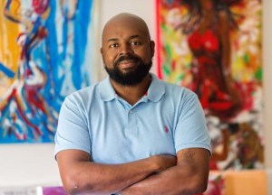 Jemal Hayes was born in Vero Beach FL. He attended Vero Beach High School, then Indian River State College for graphic design. As a child, he would receive postcards and letters from his dad, who spent much of his childhood in prison. The cards would have these amazing colorful artworks. He was in awe and he would draw and sketch on the letters that he sent back to him. During high school, poetry and drawing became Jemal’s first venture into Entrepreneurship. He wrote poetry and sketched drawings for guys to give to their girlfriends. He started “Mr. J’s Video Productions” in 2002 capturing video footage for friends and family, and quickly progressed to still life photography. The business name has since transformed to “Mr. J’s Media Productions”. He has been in business now for over 14 years primarily focused on photography, creating moving art, video production, and graphic design. In addition, he transfers old film, video, and photography to digital media. Jemal married his high school sweetheart, Simmone, in 1996, and they have 5 children. “I believe my work is my ministry,” Jemal said. “I have to have some kind of relationship with the subject, feel some kind of emotional tug at my heart or mind so that I can share what I see.” His style, though often recognizable, changes to suit the subject or issue he hopes to portray. Using bright colors against skin tones, he engages the feeling of awe-inspiring stories on canvas. among figures of African women dancing or working in step with each other.