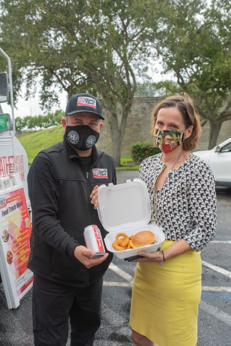 In addition to their Monday through Friday route, the traveling food emporium has served the Real Estate staff at Premier Estate Properties, breakfast for the staff at Pelican Landing Assisted Living and Memory Care, Saint Edward’s home football games, and an appreciation lunch for the associates at the Visiting Nurse Association, to mention just a few. New daily Food Truck locations are being introduced weekly (just check the Google app for that day’s location), plus a short humanitarian trip to Pensacola, made towards the end of September to feed the homeless and hungry left in despair from Hurricane Sally.