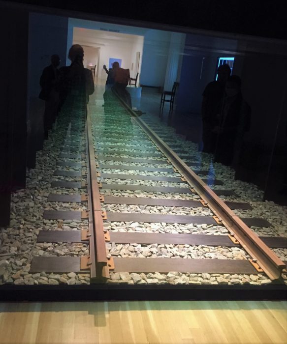 His largest work at the Stark Gallery is what appears to be a full-size train track that starts at your feet and extends back to infinity. You fully expect a train to come hurtling towards you! But it is all an illusion except for the first three feet.