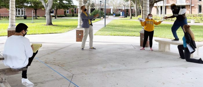 The resilience, talent and creative passion of Indian River State College (IRSC) Performing Arts program students will be on display in the joyous musical “Triumph of Love” February 18, 19 at 7:30 p.m. and February 20 at 2:00 p.m. The unique production will take place outdoors—with both audience and actors socially distanced— under McAlpin Gazebo on the green at the Massey Campus in Fort Pierce.